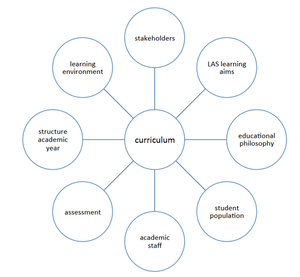 You will find LAS a very flexible programme in which you can accommodate a wonderful variety of disciplines and courses. The challenge will be to have a focus in your programme, to make choices on what to offer and what not to offer. A variety of factors have an influence on the design of your curriculum; they mutually influence each other and you will have to go back and forth between what you have planned and what is actually available. All factors contribute to a learning experience that will be as strong as possible, create an environment in which you can offer a LAS curriculum.
