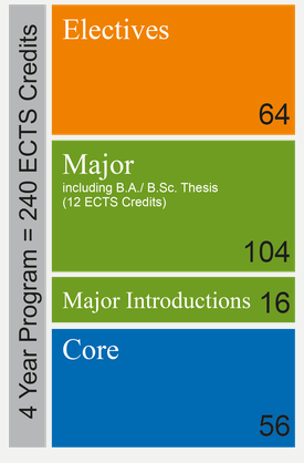 In total, students will take a minimum of 28 classes in addition to completing their Capstone project (Bachelor's thesis) to achieve the 180 ecp needed to satisfy the programme requirements to graduate.