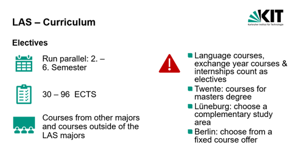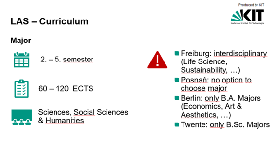 Examples of LAS programmes and different core and major distributions (produced by KIT):