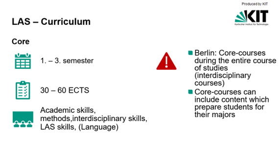 Examples of LAS programmes and different core and major distributions (produced by KIT):