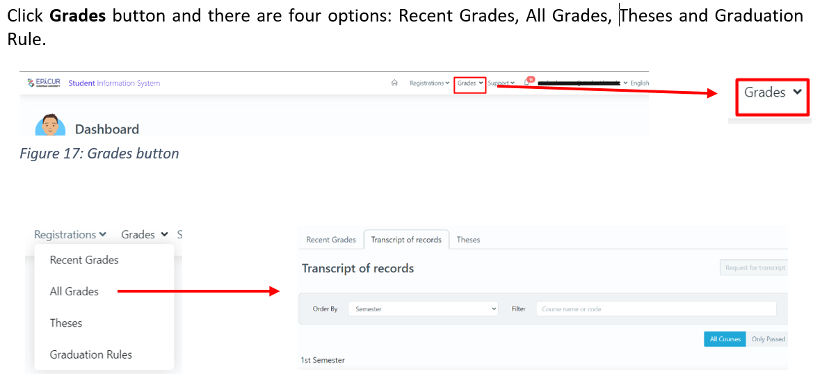 To request an EPICUR transcript, you need to perform two steps in the student portal :