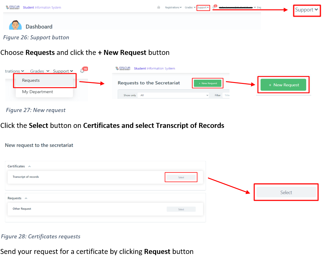 To request an EPICUR transcript, you need to perform two steps in the student portal :